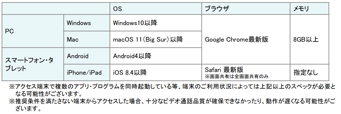 負荷のかかる使い方をしている場合等には、ご利用端末スペックやネットワーク条件が弊社基準を満たしていても、画像や音声が乱れてしまったり、接続が途切れ䛶しまうことがあります。